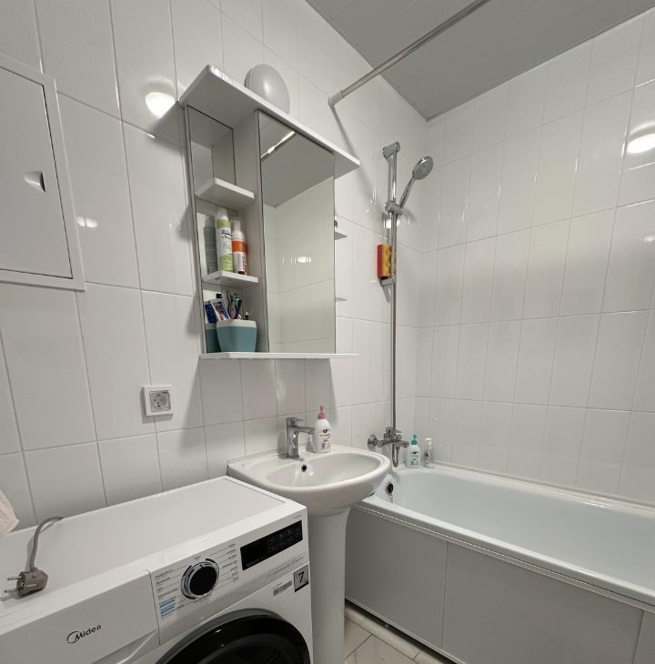 Санузел раздельный, ванна, стиральная машина.