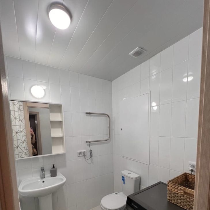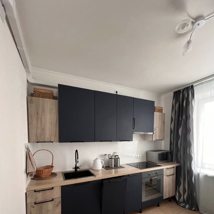 Квартира полностью укомплектована — можно заехать сразу после просмотра. Здесь есть холодильник, стиральная машина с функцией сушки, утюг, электрическая плита с духовым шкафом и вытяжкой, посудомоечная машина, микроволновая печь и чайник. Также предусмотрены посуда, столовые приборы, комплект постельного белья и очиститель воздуха. В квартире установлен телевизор и проведён безлимитный Wi-Fi.