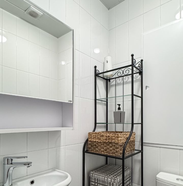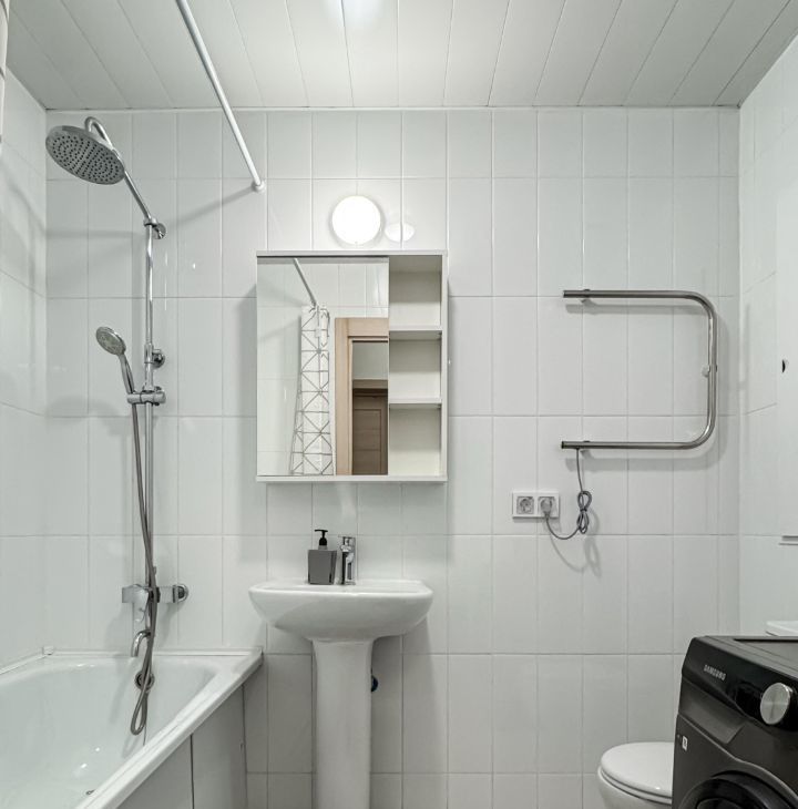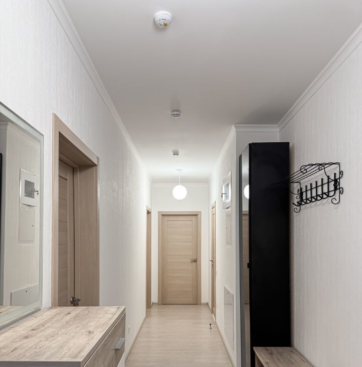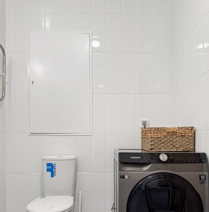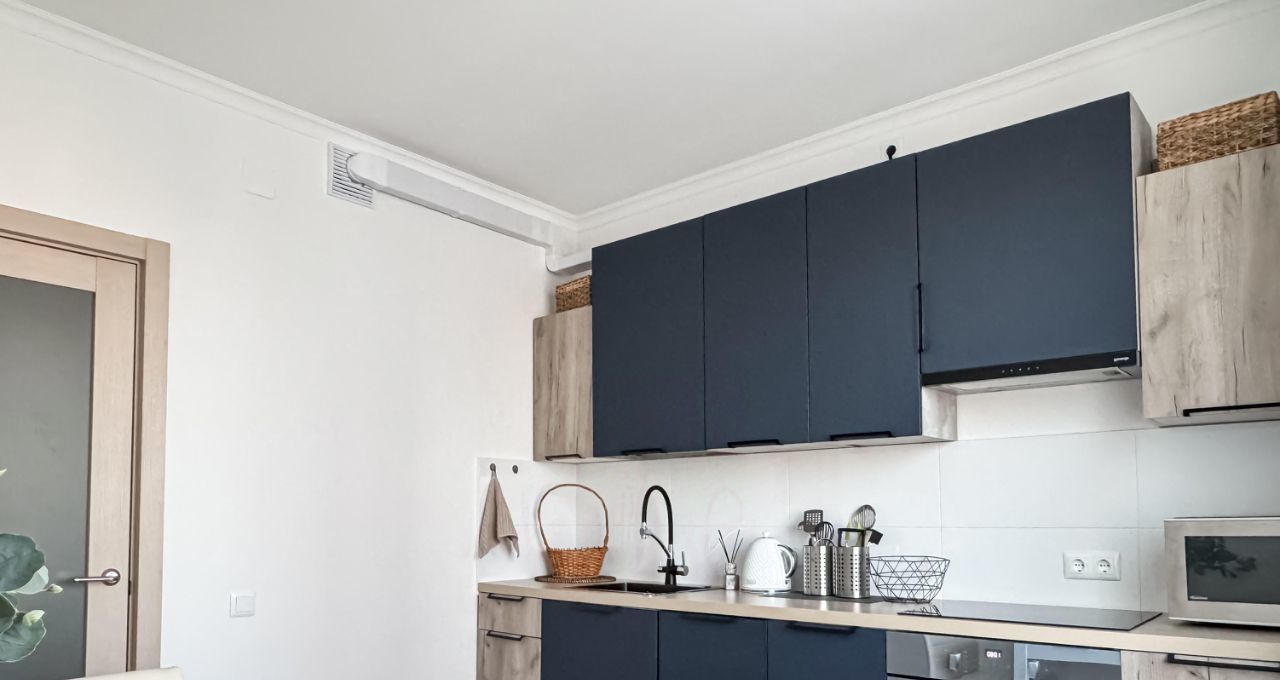 Квартира полностью укомплектована — можно заехать сразу после просмотра. Здесь есть холодильник, стиральная машина с функцией сушки, утюг, электрическая плита с духовым шкафом и вытяжкой, посудомоечная машина, микроволновая печь и чайник. Также предусмотрены посуда, столовые приборы, комплект постельного белья и очиститель воздуха. В квартире установлен телевизор и проведён безлимитный Wi-Fi.