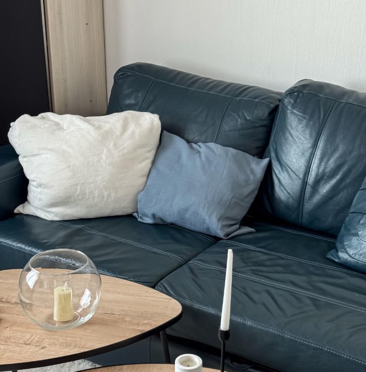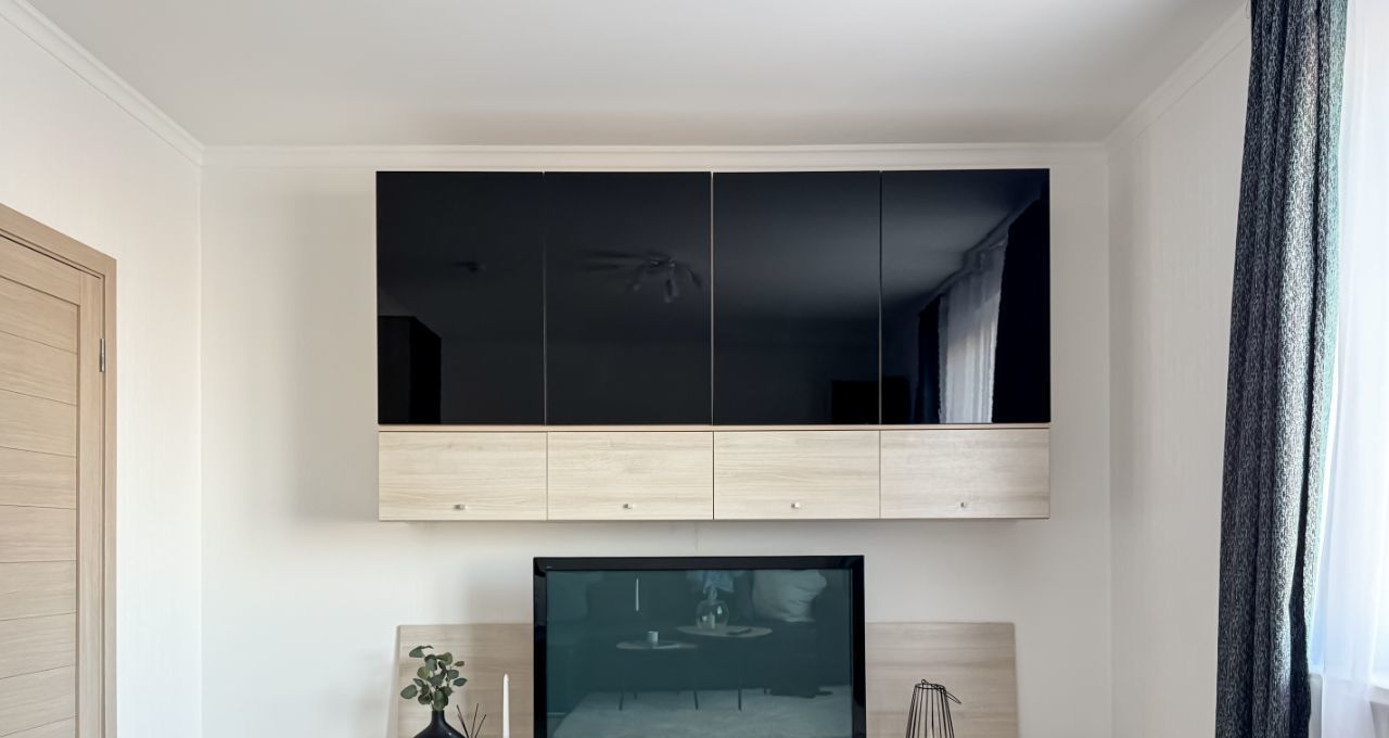 — просторная гостиная с большим диваном, вместительными шкафами, кофейным столиком и телевизором — идеальное место для отдыха;