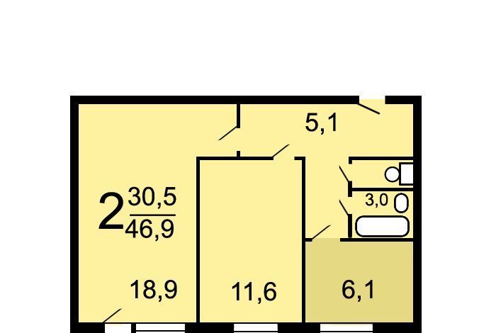 2-к кв. Москва проезд Дежнева, 19К2 (47.0 м²)