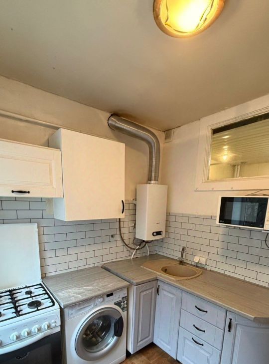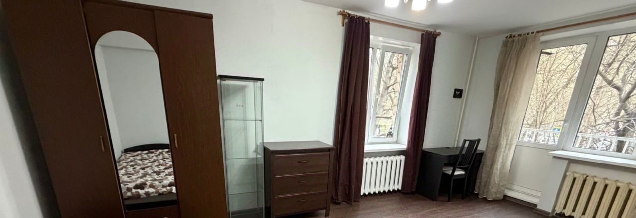 Квартира в нормальном состоянии рядом с метро- чистая, светлая- комнаты изолированные: металлическая дверь, окна ПВХ, кухонный гарнитур, газовая плита, газовая колонка (горячая вода будет всегда и экономия на оплате), холодильник, стиральная машина-автомат, совмещенный сан/узел. В дальней комнате: 2 окна: диван, зеркальный шкаф, комод, стол, стул; выход на балкон; в другой: диван, шкаф.