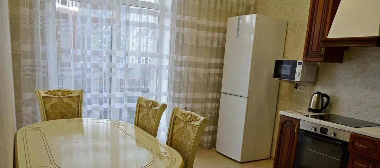 Квартира полностью меблирована и готова к проживанию. В наличии современная техника: кондиционер, холодильник, посудомоечная машина, телевизор и стиральная машина. Ванная комната оборудована ванной. Планировка включает одну лоджию, где можно насладиться утренним кофе или вечерним отдыхом.
