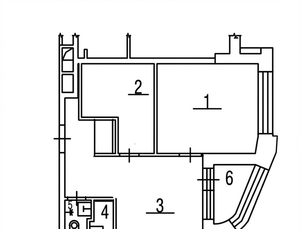 • На планировке: 1. Детская 2. Спальня 3. Кухня-гостиная 4. Ванная комната. 5. Туалет. 6. Лоджия.