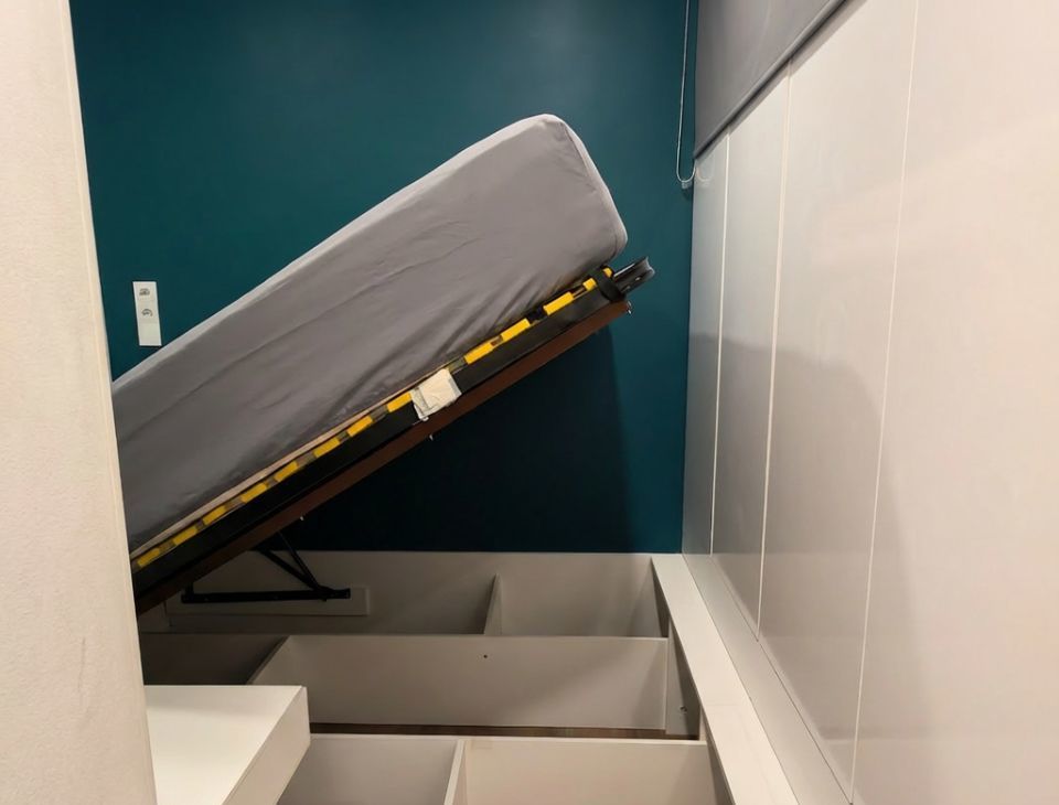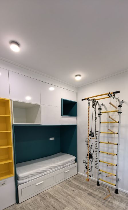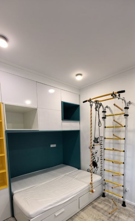 • Мебель. Много мест для хранения, в том числе в спальне кровать с подъемным механизмом - под кроватью много места для хранения. В детской кровать-кушетка "IKEA BRIMNES" с ящиками (в сложенном состоянии размер 80х200см ,в разложенном - 160х200см).