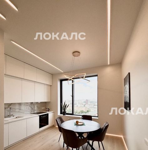 Сдаётся просторная двухкомнатная квартира с дизайнерским ремонтом рядом с метро "Авиамоторная". Общая площадь составляет 65 кв. м, из которых 20 кв. м занимает кухня. Квартира находится на 19-м этаже 27-этажного монолитного дома, построенного в 2019 году. Высокие потолки 3.2 метра и окна, выходящие как на улицу, так и во двор, создают ощущение простора и света.