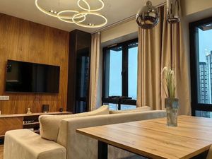 В квартире есть всё необходимое для комфортного проживания. Просторная кухня оборудована современной техникой: холодильником, посудомоечной машиной и кондиционером. Также в наличии телевизор и стиральная машина. В комнате есть мебель, а в совмещённом санузле — ванна. Всё выполнено в современном стильном дизайне, что добавляет уют и элегантность вашему новому дому.