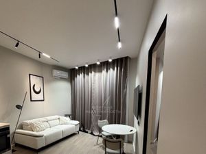 В квартире выполнен дизайнерский ремонт, создающий атмосферу уюта и комфорта. Просторная жилая площадь в 56 кв. м включает в себя две уютные комнаты и кухню площадью 12 кв. м, оснащенную всей необходимой мебелью и техникой. В наличии кондиционер, холодильник, посудомоечная машина, телевизор и стиральная машина. Квартира обладает двумя совмещенными санузлами, один из которых оборудован ванной, а второй — душевой кабиной.