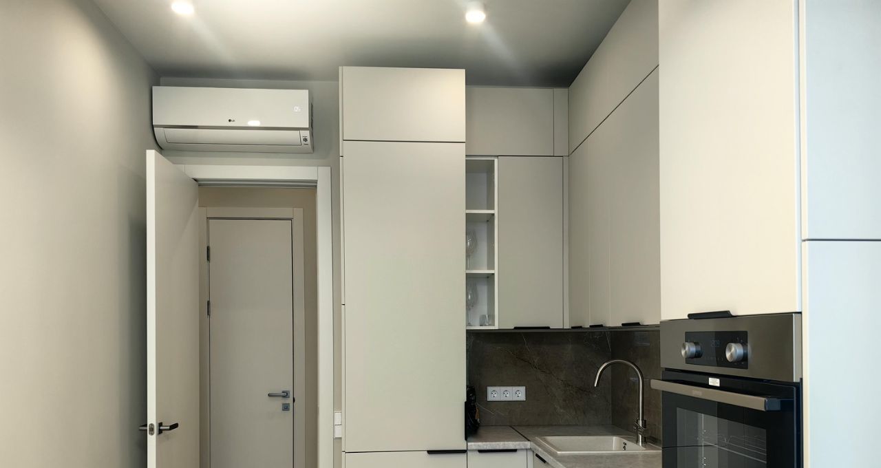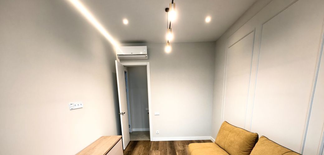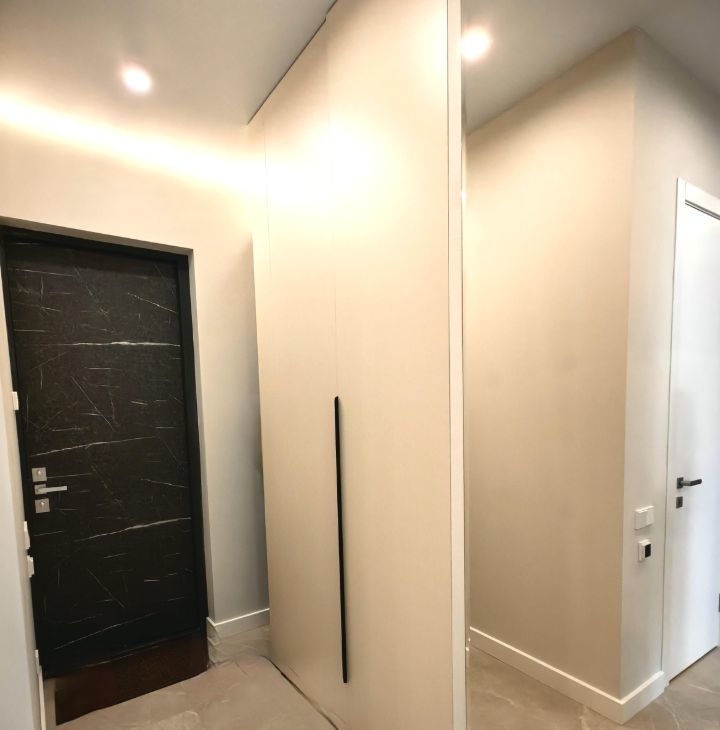 В каждой комнате кондиционер, в су и входной зоне тёплые полы. 2 су. В прихожей встроенный шкаф, в комнате большая гардеробная.