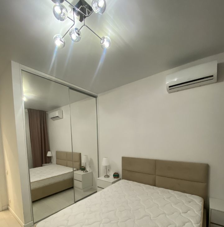 Сдается 2-х комнатная квартира в ЖК бизнес-класса Silver. Спальня: двуспальная кровать, шкаф, кондиционер.Кухня-гостиная: диван, стенка, телевизор, кондиционер, кухонный гарнитур со всей бытовой техникой: