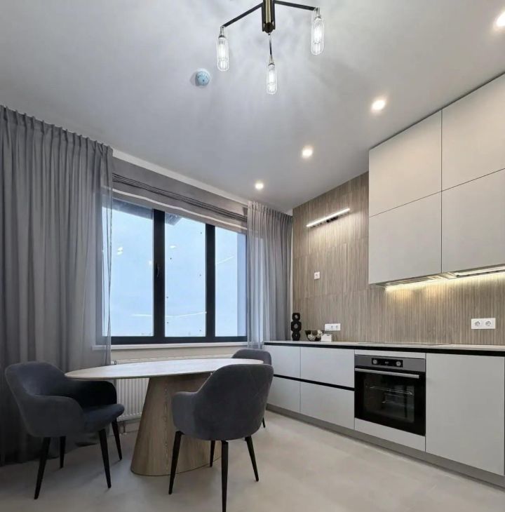 В квартире выполнен дизайнерский ремонт. Изолированная кухня, изолированные спальни, совмещенный санузел.