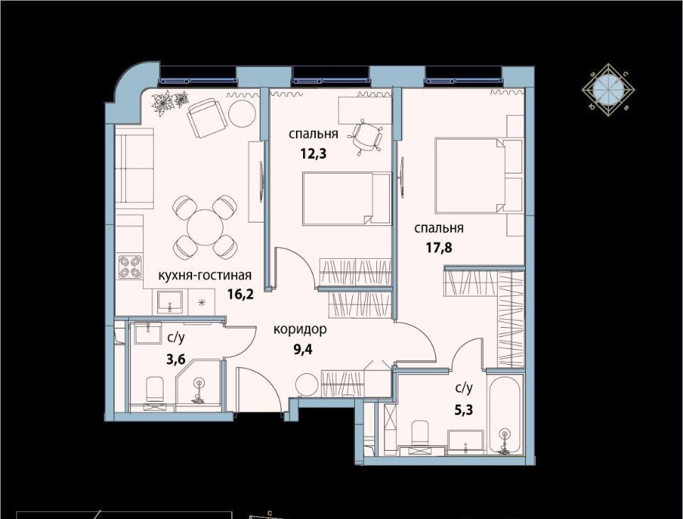 2-к кв. Москва проезд Шелихова, 1к1 (64.0 м²)