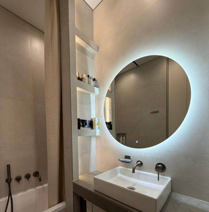 Совмещенный санузел: отделка керамогранитом, теплый пол, электрический полотенцесушитель.