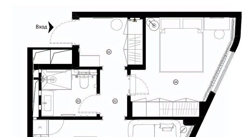 Планировка: просторная кухня гостиная и отдельно спальня , холл(коридор), совмещенный сан.узел с душевой