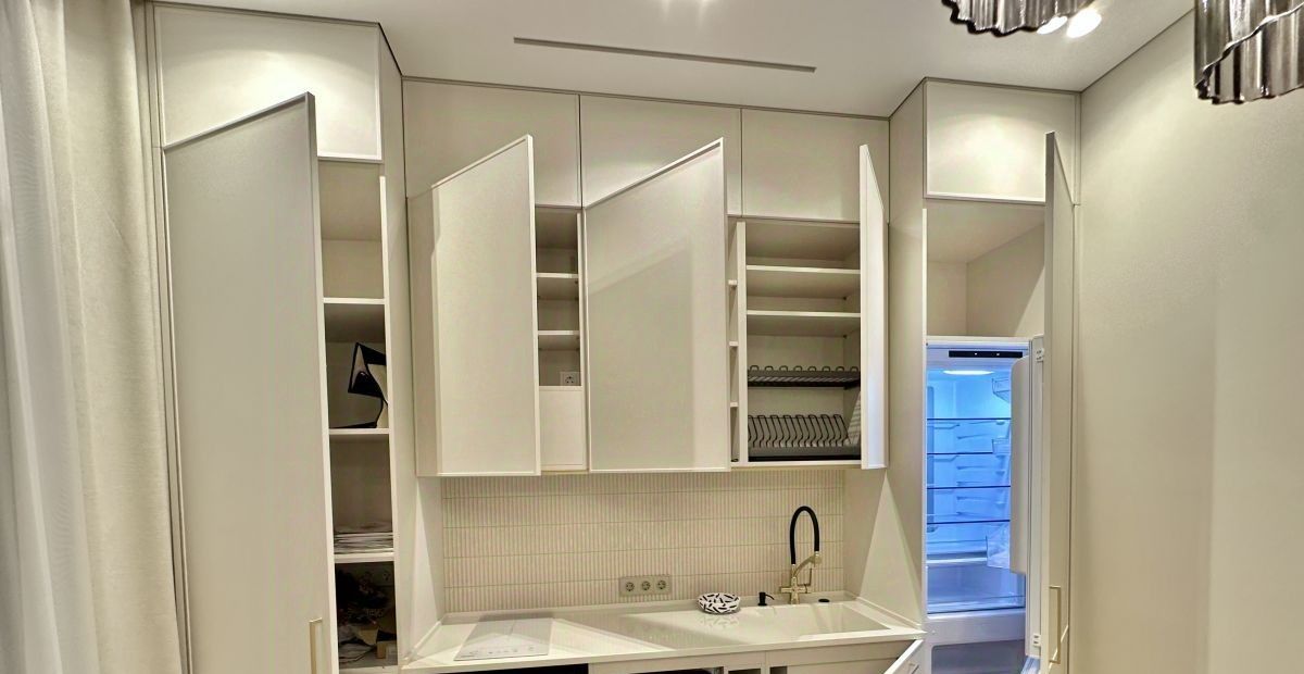КУХНЯ- ГОСТИНАЯ: Кухонный гарнитур с островом , встроенный кухонный гарнитур, столешница кухни из искусственного камня Grandex , Диван, встроенная техника: варочная панель , духовой шкаф с функцией СВЧ, Измельчитель Bone Crusher , холодильник двухкамерный (Weissgauff), посудомоечная машина (Weissgauff), большой ЖК Телевизор Samsung., . Кондиционер ENERGOLUX INVERTER , Электрокарниз Dauerhaft, Чайник электрический. Вытяжка. Стиральная машина с сушкой (KWDI 12V75)