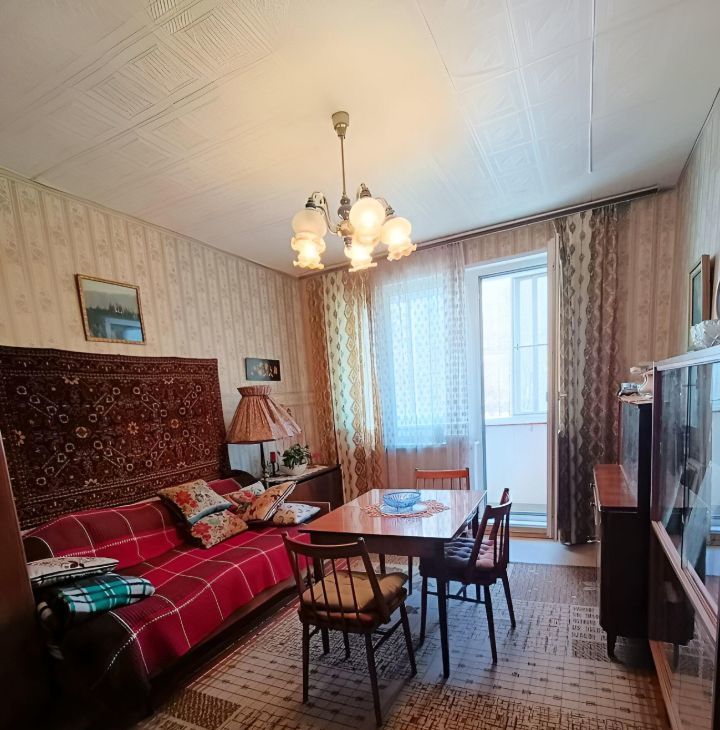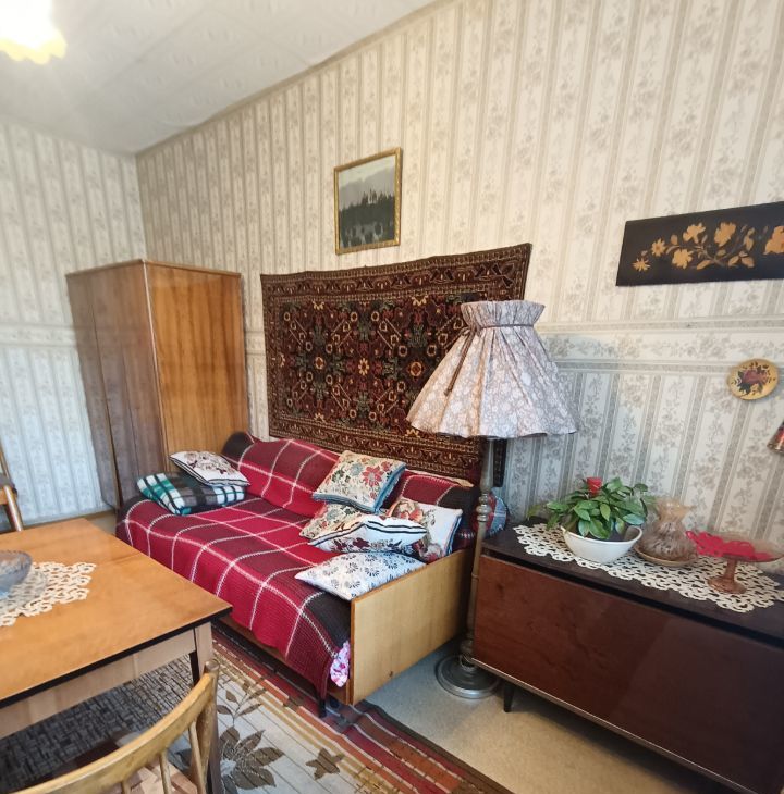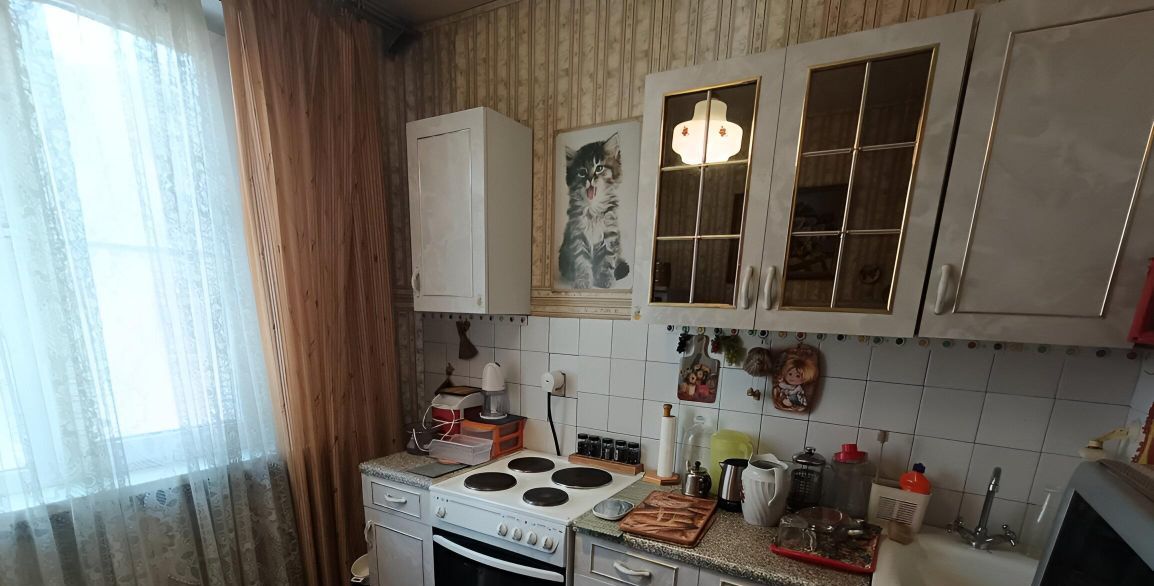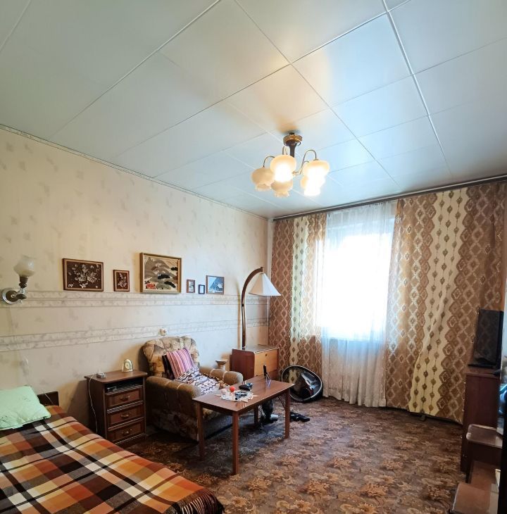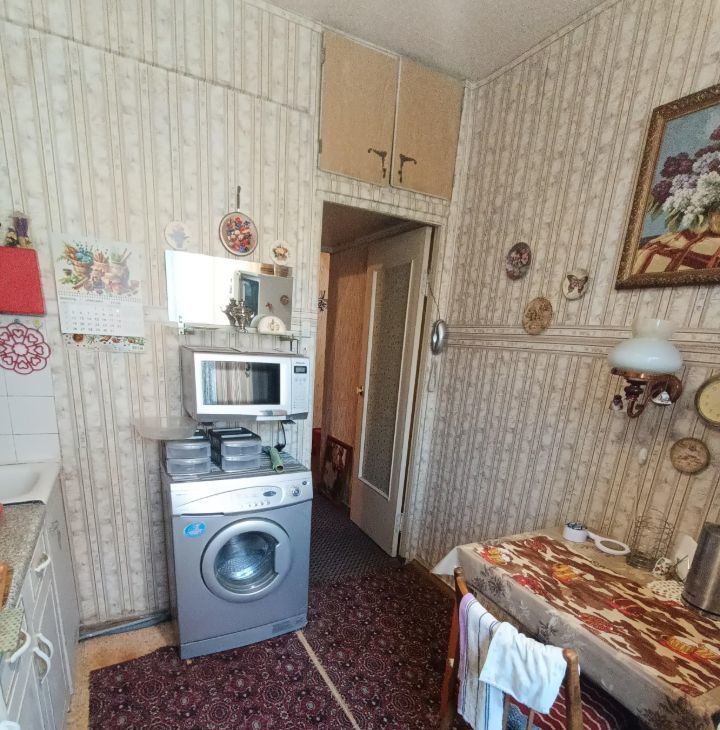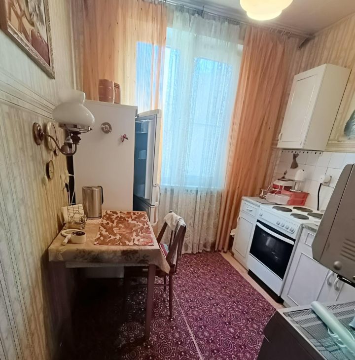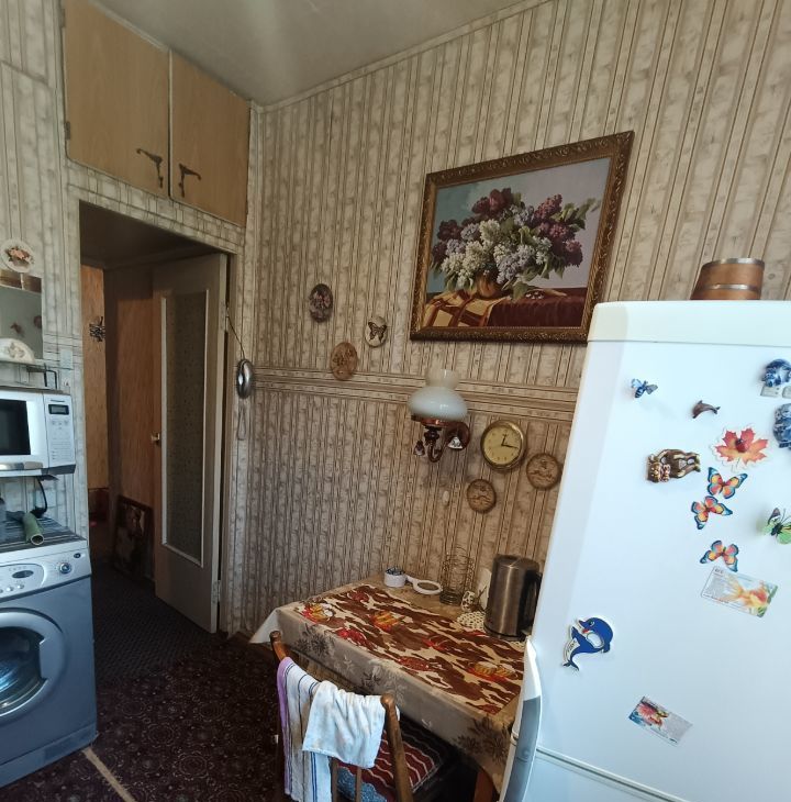 Комнаты изолированные, что обеспечивает комфорт и приватность. В квартире выполнен косметический ремонт Ретро. Из мебели имеются шкафы и диван, а также телевизор. Кухня оборудована необходимой техникой, включая холодильник и стиральную машину.