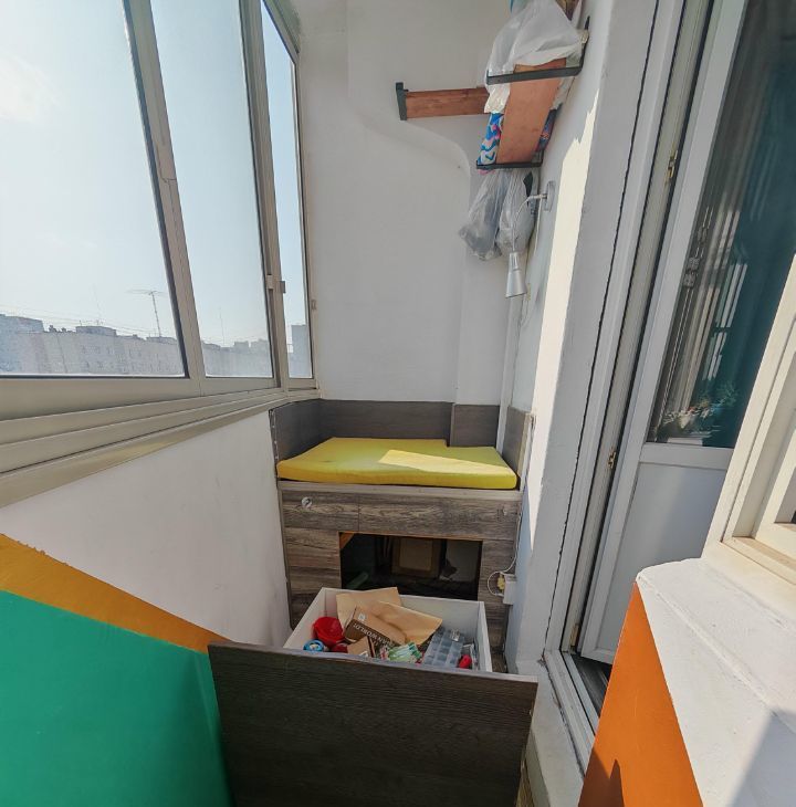 Балкон: подиум для расслабления + система хранения, два велосипеда помещаются отлично.
