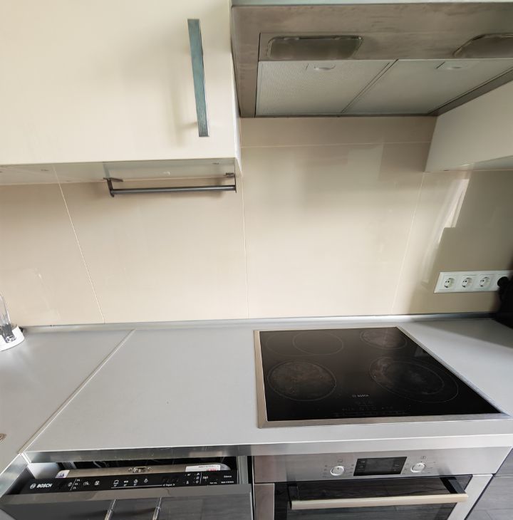 Кухня: посудомойка, плита, духовка Bosch, холодильник, вытяжка, микроволновка Samsung.