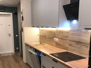 В квартире сделан современный евроремонт. Планировка включает в себя объединённый санузел и балкон. Квартира полностью меблирована: мебель есть как в комнате, так и на кухне. Для вашего комфорта установлены кондиционер, холодильник, посудомоечная машина, телевизор и стиральная машина, духовая печь, микроволновая печь. В ванной комнате установлена большая ванна. Проведён интернет, поэтому можно оставаться на связи.