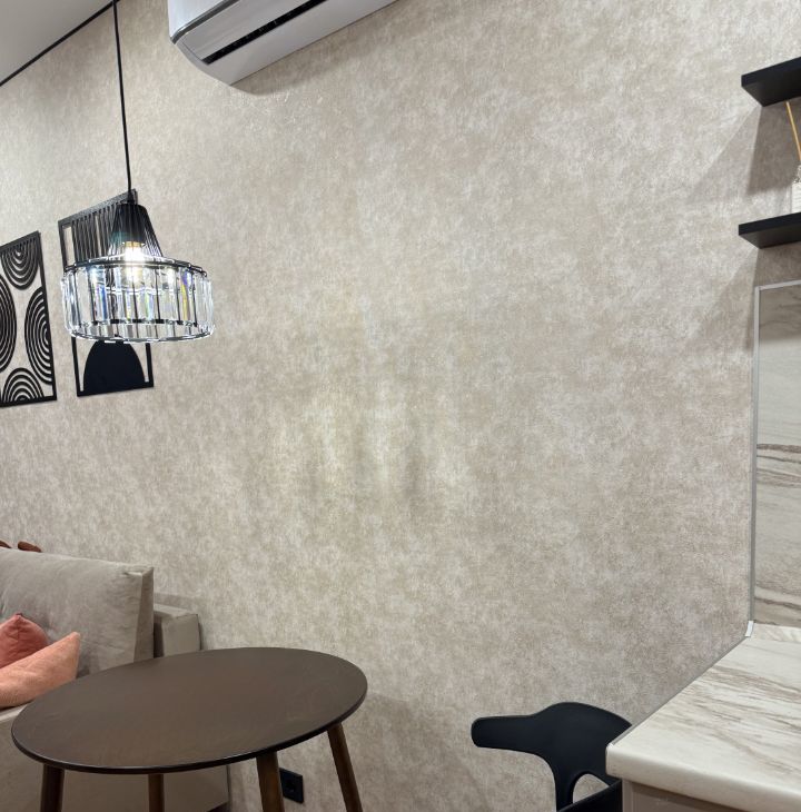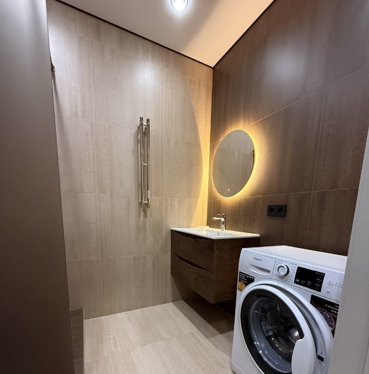 Квартира: дизайнерский ремонт, качественные материалы. Спальная комната с мягким освещением и просторная гостиная , рабочая зона.