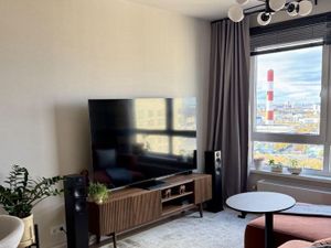 В квартире никто не жил, вся мебель и техника новые, есть все необходимое для комфортного проживания. Функциональные шкафы, двуспальная кровать с подьемным механизмом, диван, кухня со всем необходимым - встроенный холодильник, духовой шкаф и СВЧ, плита, посудомоечная машинка. Есть кондиционер и ТВ.