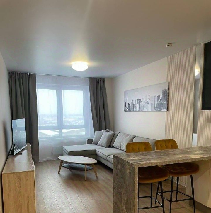 Идеальный вариант для аккуратной пары или мамы с ребенком (не курящим, без животных). Просторная квартира 49,8 м² (огромная кухня-гостиная 23 м²) на 17-м этаже из 33. Первое заселение — дизайнерская отделка, вся мебель и премиум-техника новые!