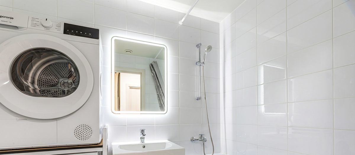 - Бытовая техника: телевизор, стиральная машина, сушильная машина, холодильник, электрический чайник, пылесос, проведен интернет, установлен вай-фай роутер.