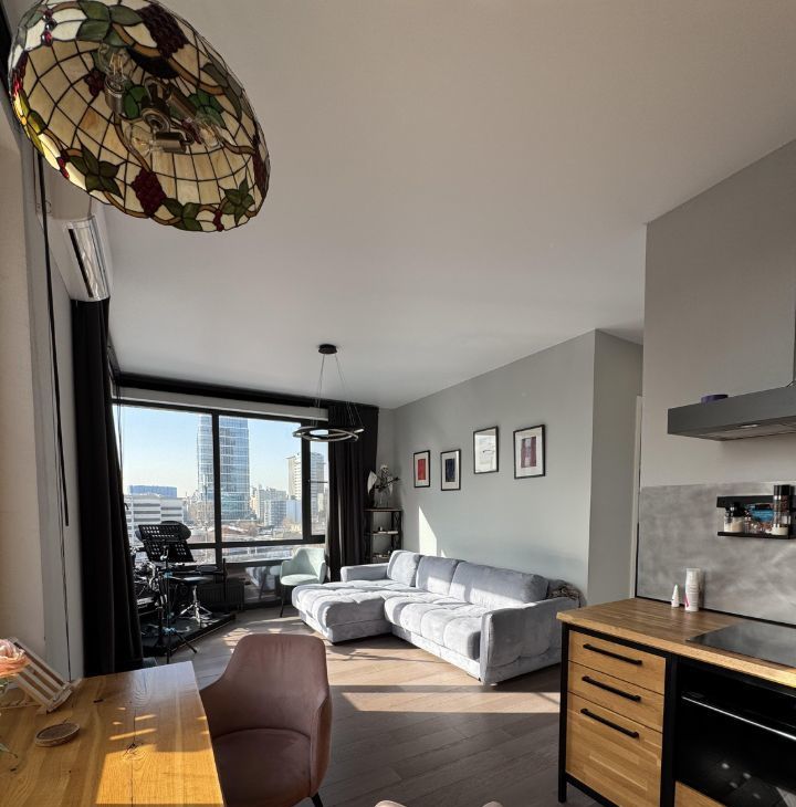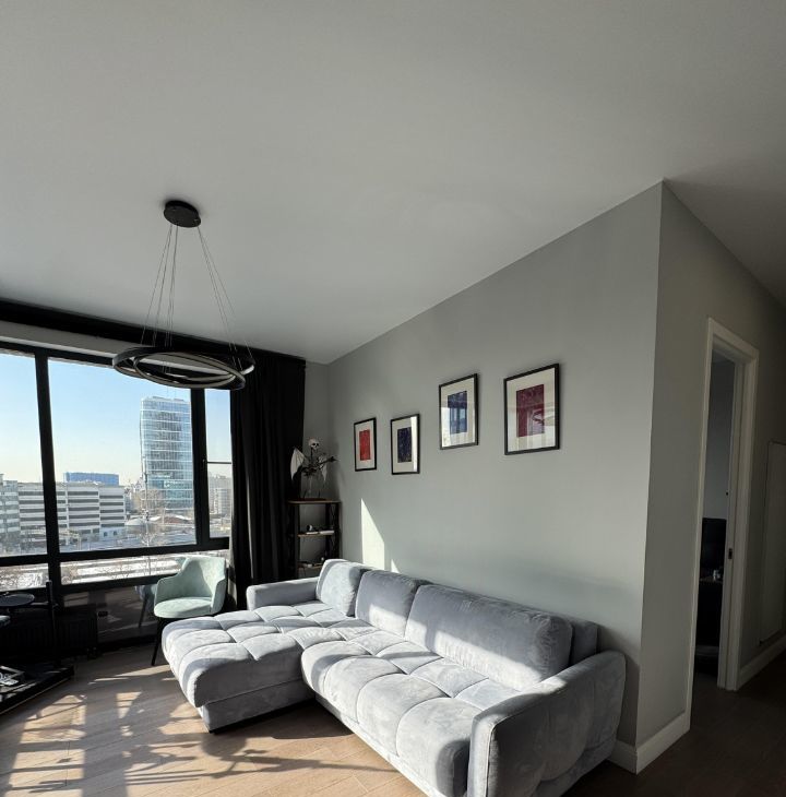 Вашему вниманию предлагается просторная евро 2х комнатная квартира в долгосрочную аренду. Две изолированные комнаты, панорамные окна в кухне-гостинной, вся мебель на заказ и бытовая техника в наличии: в зале и спальне диваны раскладываются в удобное 2х спальное место,встроенный кухонный гарнитур, шкафы для вещей, 2 кондиционера,посудомойка, стиральная машинка-автомат, закрытый двор с детской площадкой, парковка за шлагбаумом (за дополнительную плату подземный паркинг), установлена система "умный дом".
