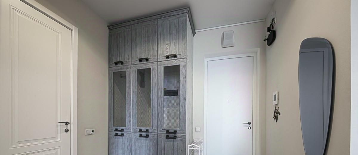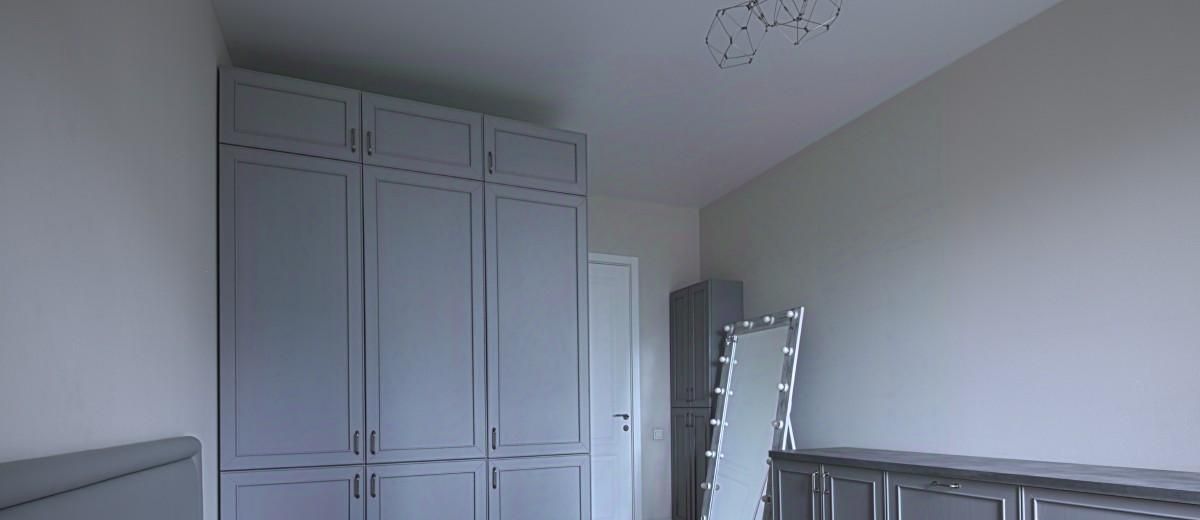 шкаф в прихожей, шкаф в спальне, кровать с подъёмным механизмом и вместительным ящиком для хранения вещей.