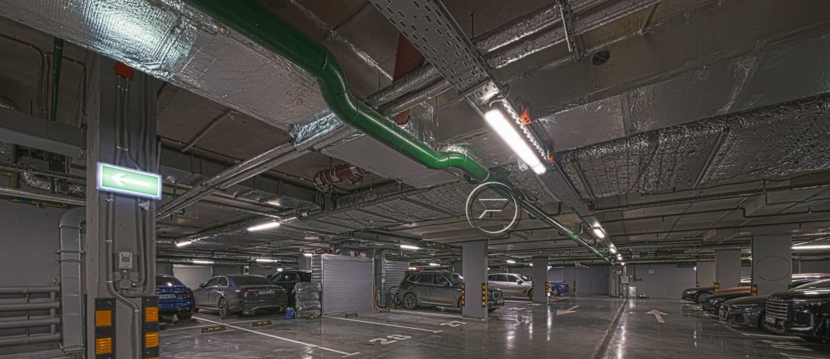 Подземная парковка (1 машино-место за дополнительную плату), огороженная территория, круглосуточная охрана, презентабельная входная группа, консьерж.