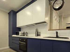- есть полный набор необходимой мебели и техники (в том числе, посудомоечная и стиральные машины, кондиционер, варочная панель, духовка, вытяжка, микроволновая печь);