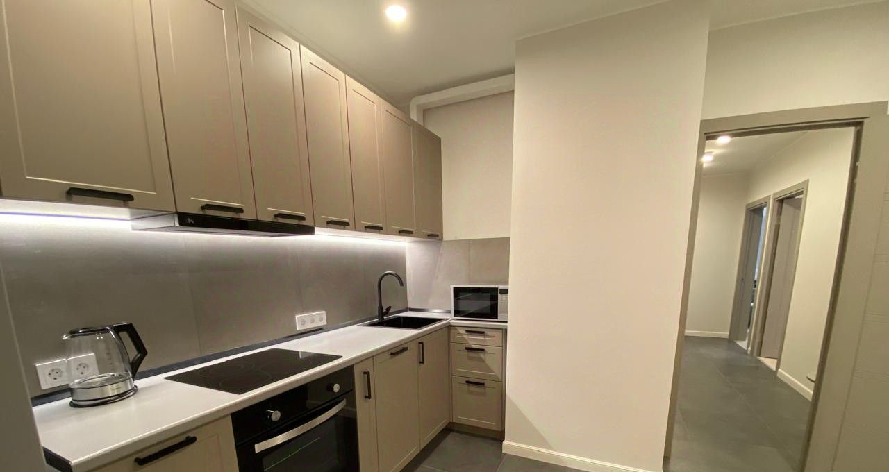 В квартире новый кухонный гарнитур с встроенной техникой ( духовой шкаф, стеклокерамическая плита, вытяжка, посудомоечная машина). Холодильник, стиральная машина, кондиционер.