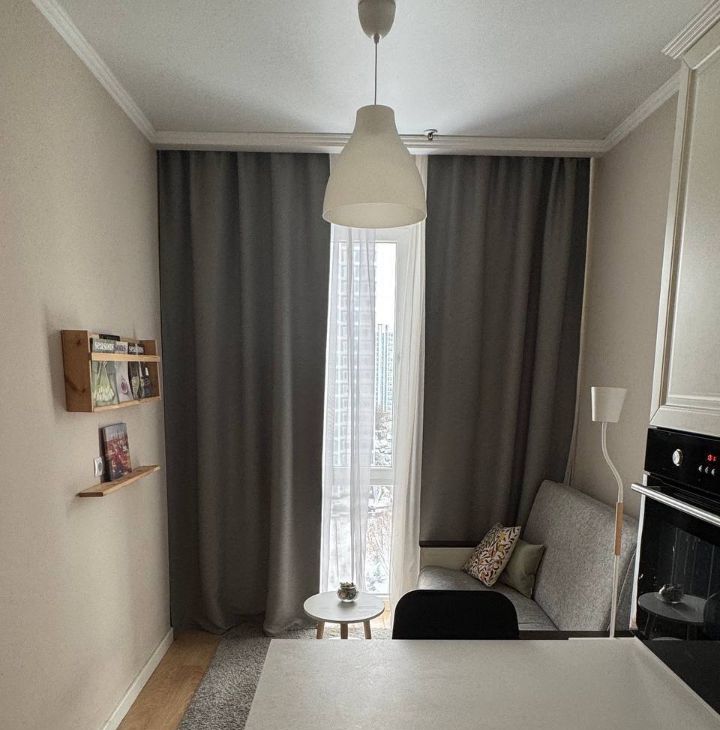 Площадь: 37 м² с максимально полезным использованием пространства и высотой потолка 3 метра - ощущения простора и света.