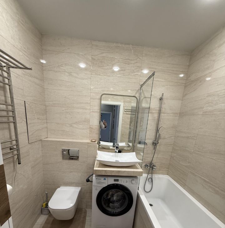 техника: посудомоечная машина, духовой шкаф, микроволновка, холодильник, стиральная машина, телевизор,кондиционер.