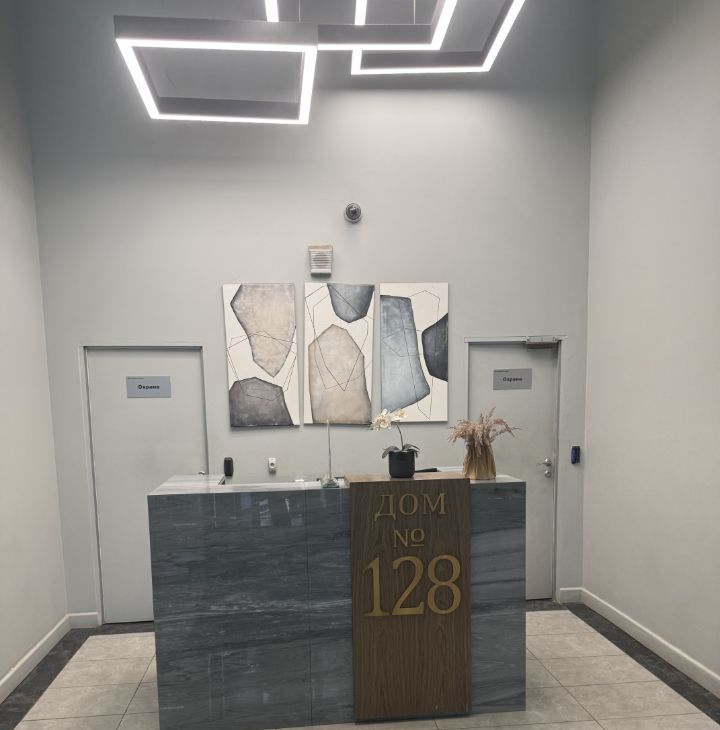 Дом с круглосуточной охраной и видеонаблюдение, красивая входная группа.