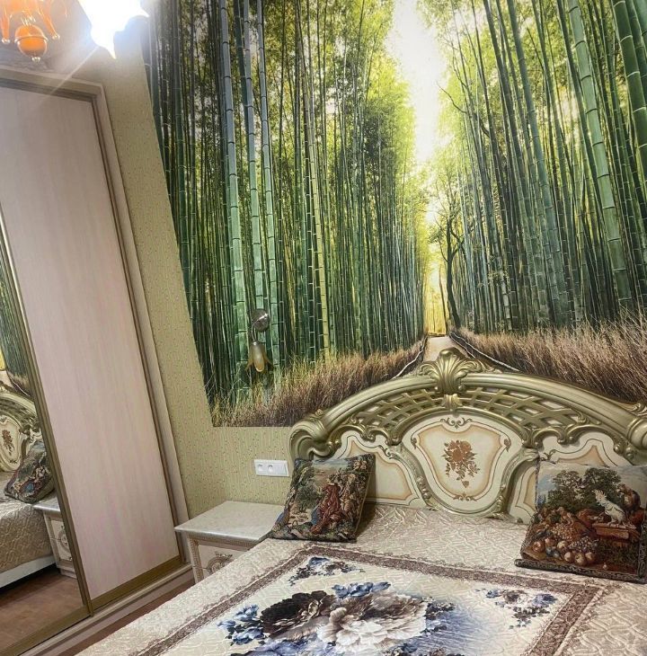 Комнаты смежные. Спальня- двухспальная кровать, кондиционер, ТВ, шкаф-купе. Гостиная , кабинет, изолированные ванная комната: душевая кабина , туалет, кухня меблирована, встроенная , холодильник, СВЧ, духовой шкаф, застекленный балкон во двор.