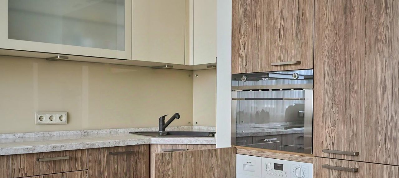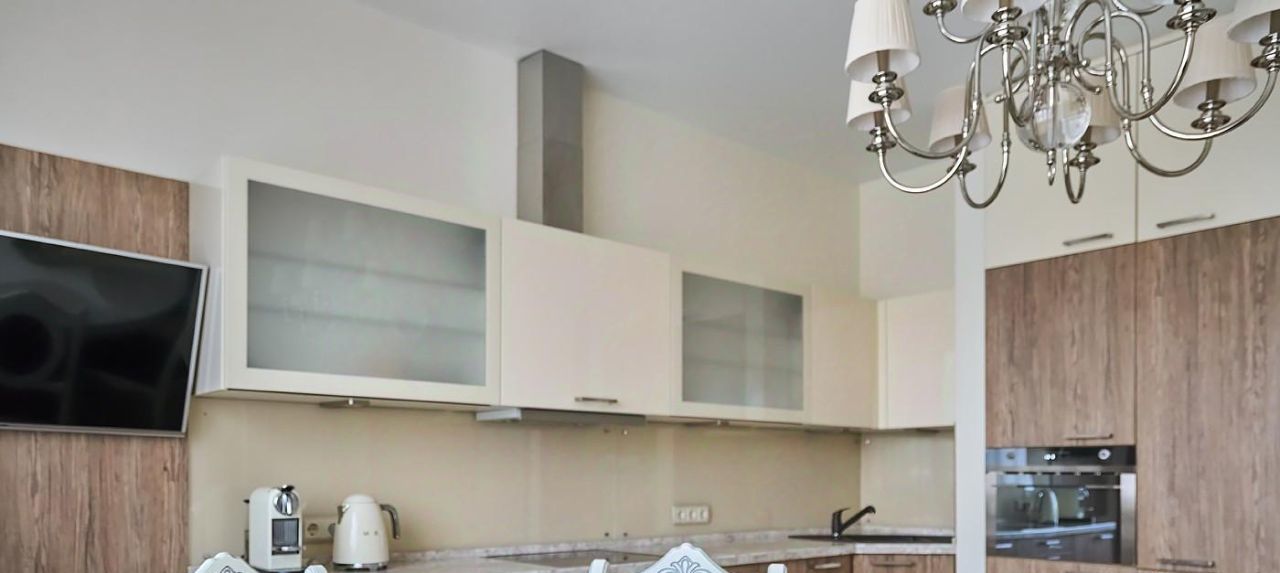 — Изолированная кухня, полностью укомплектованная мебелью и техникой ведущих европейских брендов — идеальна как для быстрых завтраков, так и для уютных ужинов.