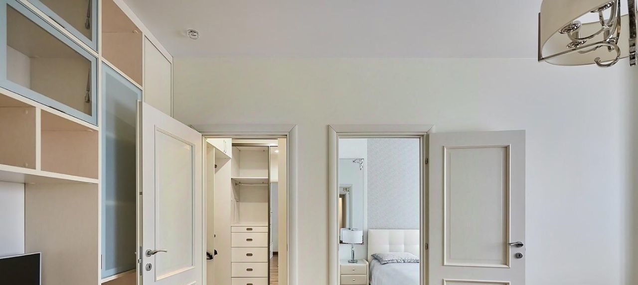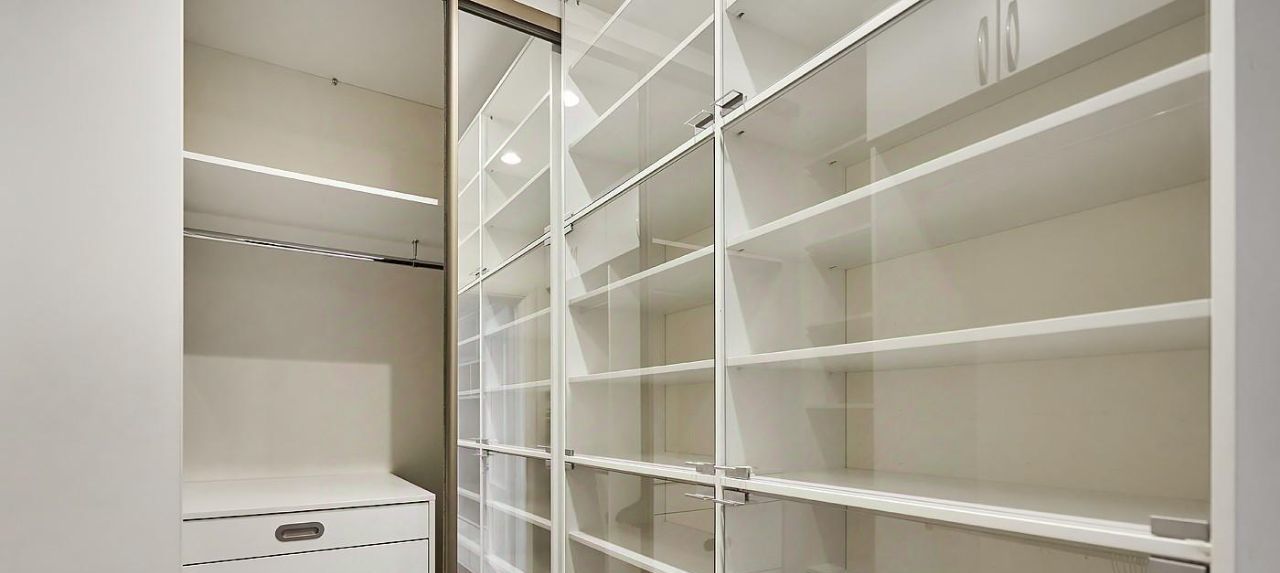 — Вместительная гардеробная, позволяющая сохранить порядок и эстетику интерьера.