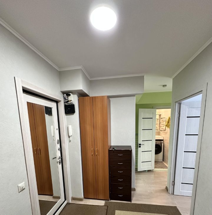 Квартира полностью готова для комфортного проживания. В комнатах и на кухне есть необходимая мебель. Вас порадует современная техника: кондиционер для жарких дней, холодильник, телевизор и стиральная машина. Санузел раздельный, есть ванна, что обеспечит удобство и комфорт. Выход на лоджию подарит вам приятные виды на улицу.