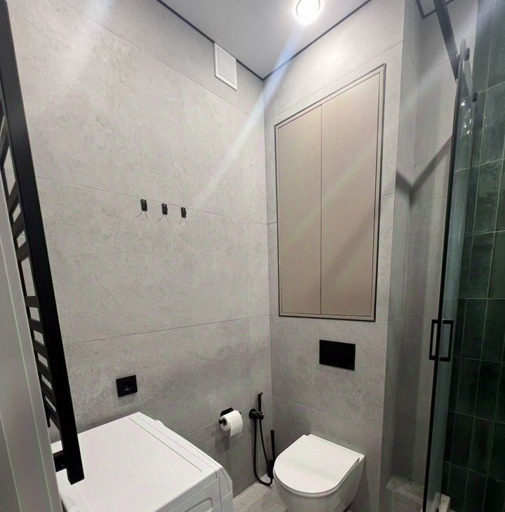В квартире выполнен дизайнерский ремонт, что создаёт уютную атмосферу. Санузел совмещённый, оборудован душевой кабиной и стиральной машиной. В прихожей предусмотрены удобные шкафы для одежды.