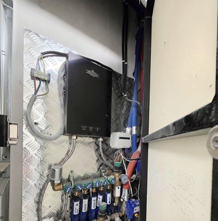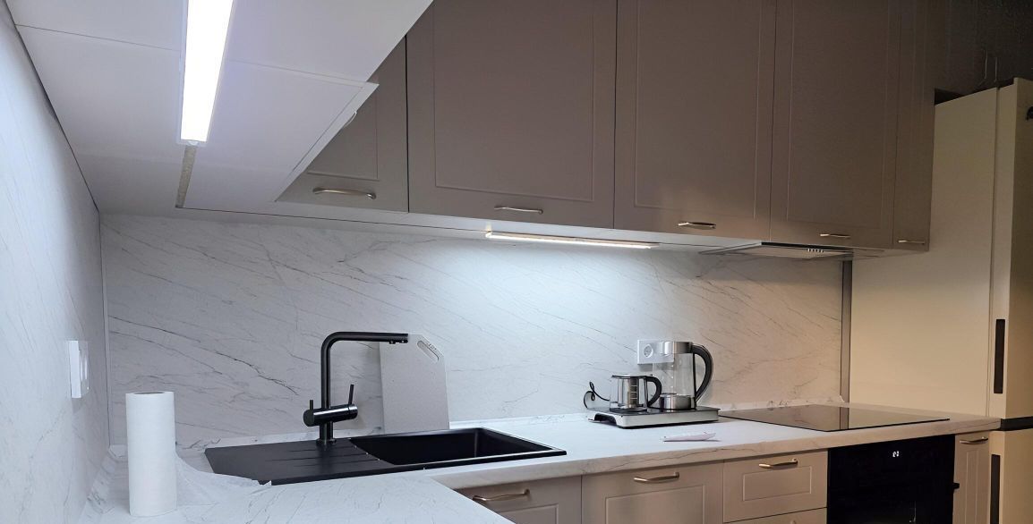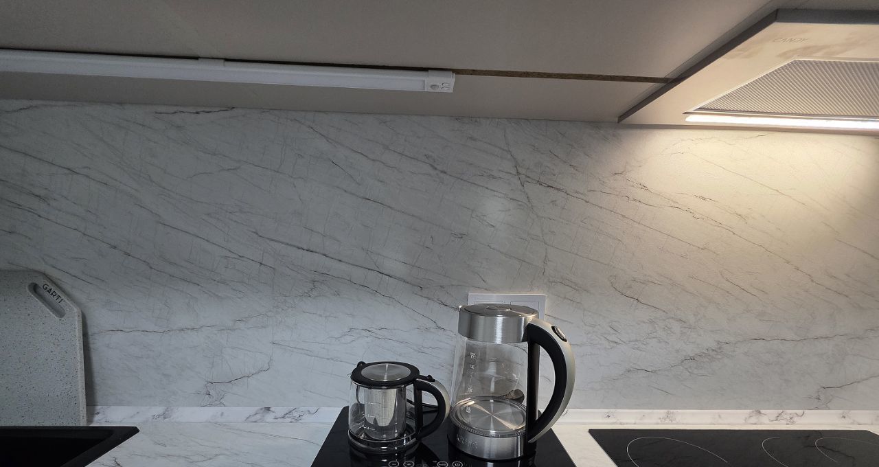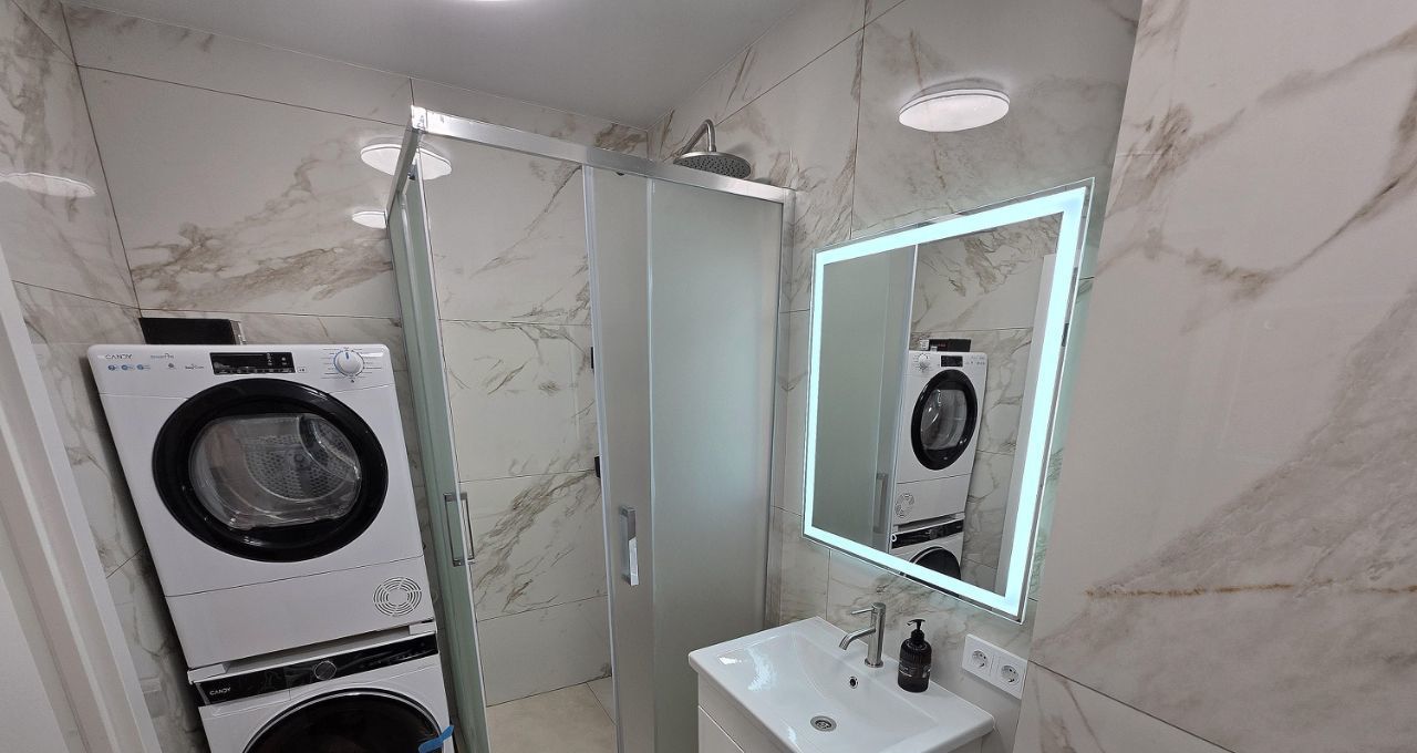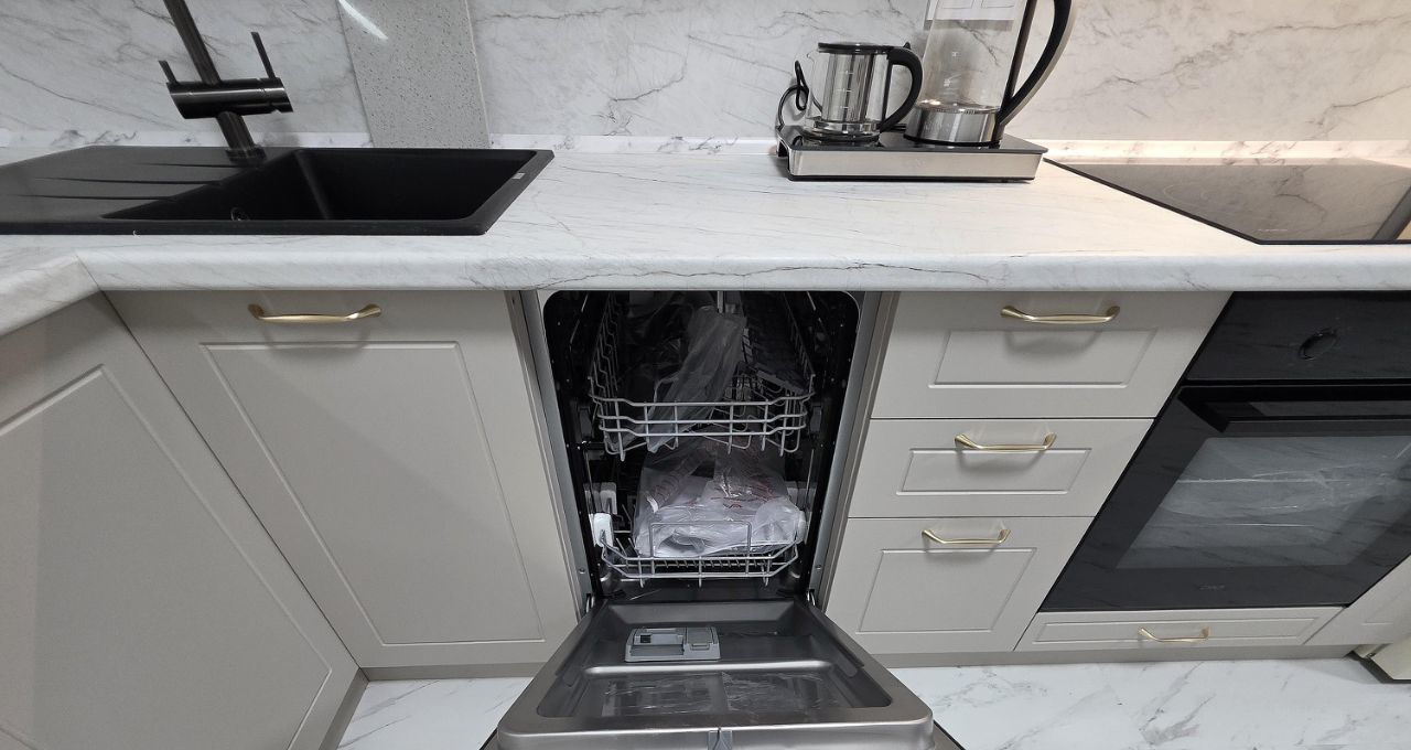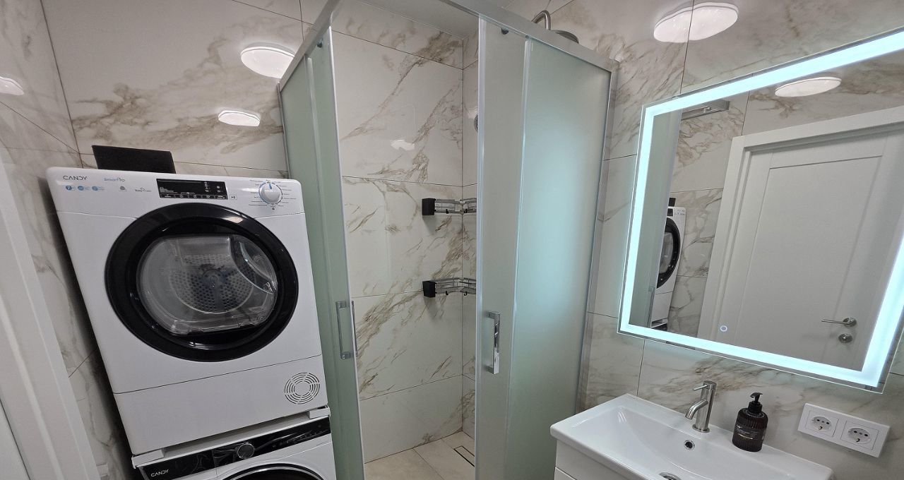 Полностью обставленная кухня - гостиная оснащена всей необходимой техникой: кондиционером, холодильником, телевизором, посудомоечной машиной, и остальной техникой для удобства. Установлен фильтр воды.