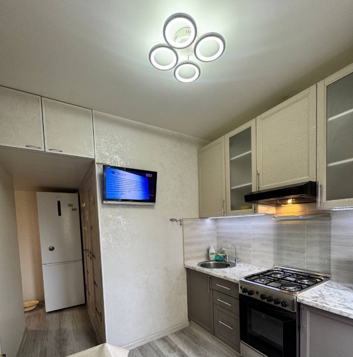 Бытовая техника: холодильник, плита с духовкой, вытяжка, чайник, микроволновка, полотенцесушитель, стиральная машина, кондиционер , телевизоры.