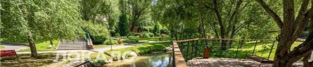 Дом находится на огромной огороженной территории, протянувшейся вдоль реки Раменка, в прекрасно оборудованном парке.