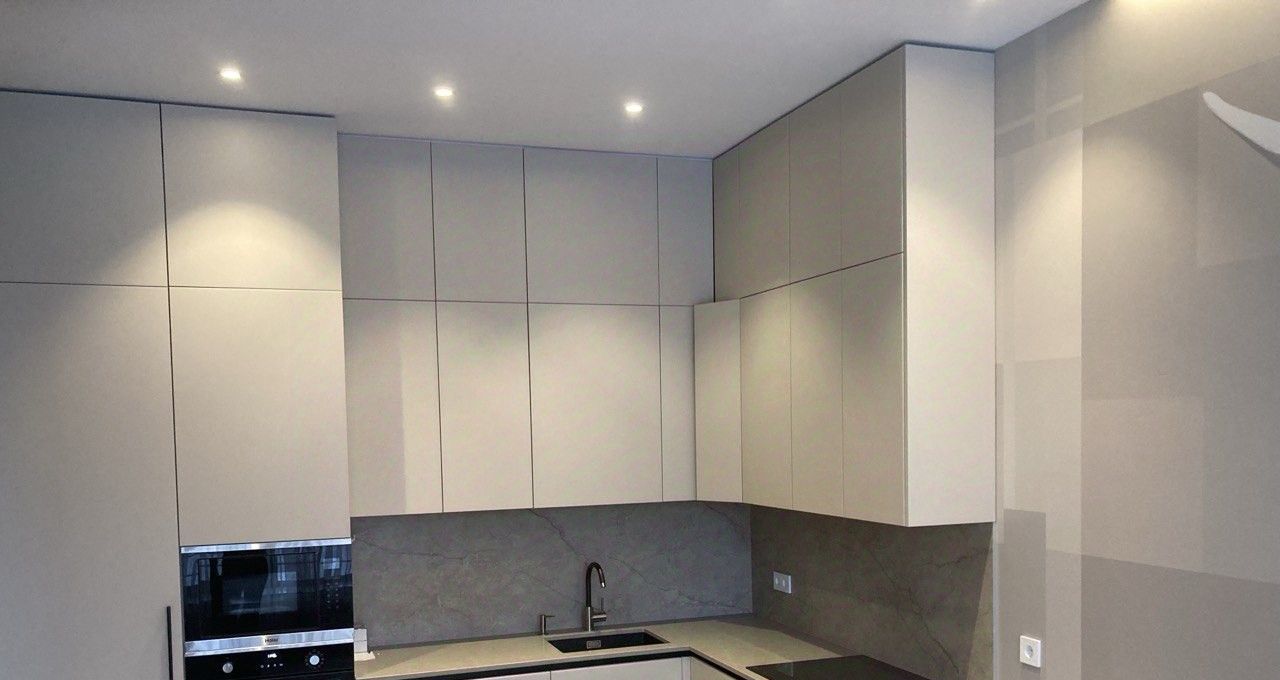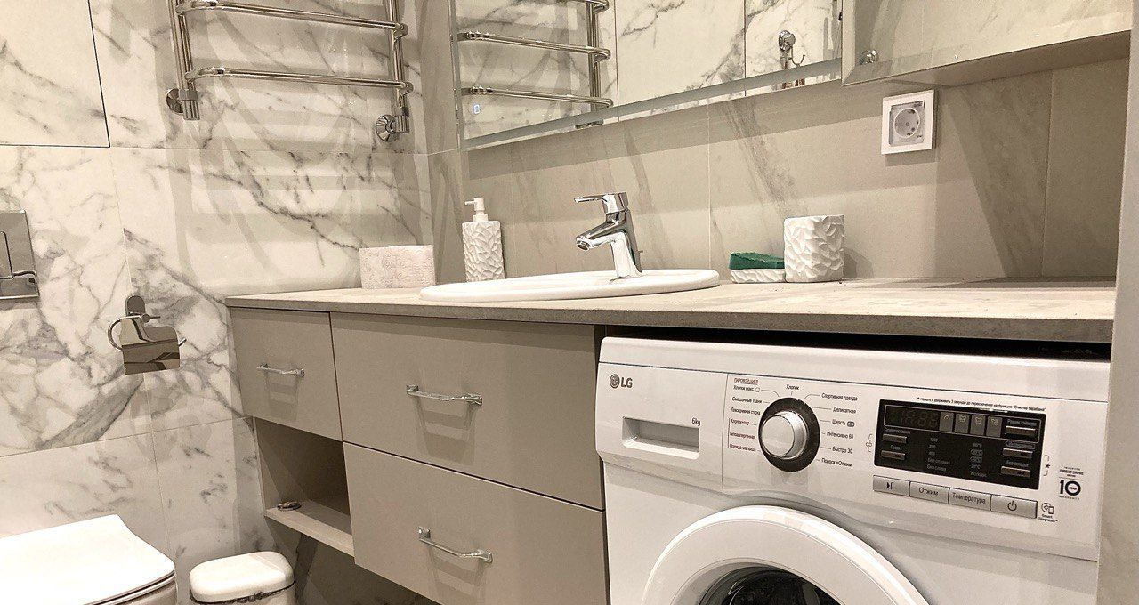 Встроенная бытовая техника HAIER: холодильник, посудомоечная машина, электрическая варочная панель, духовой шкаф, вытяжка, микроволновая печь, в ванной комнате стиральная машина LG.