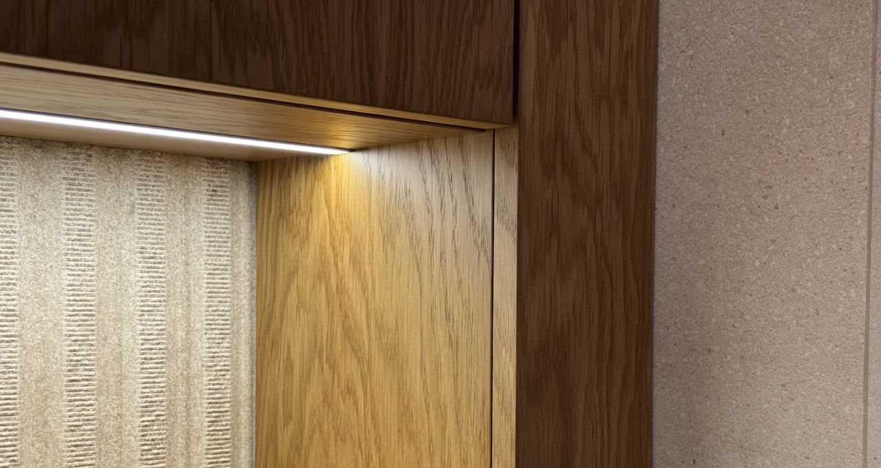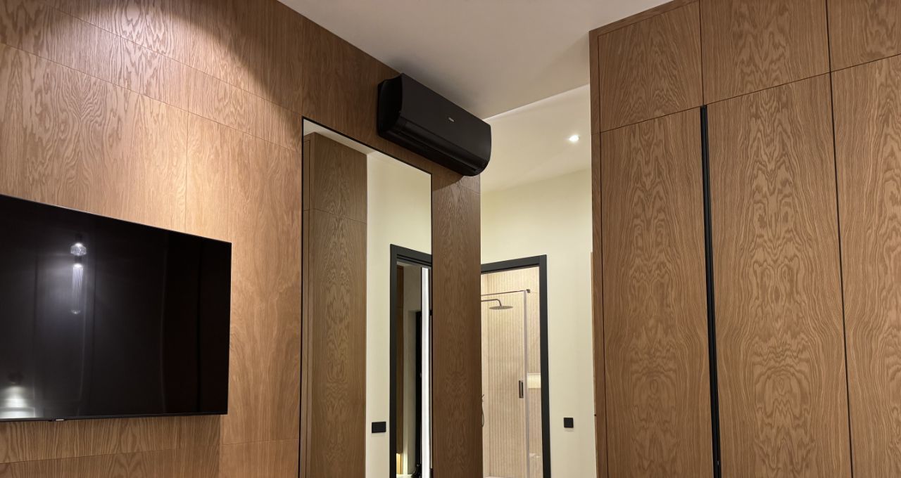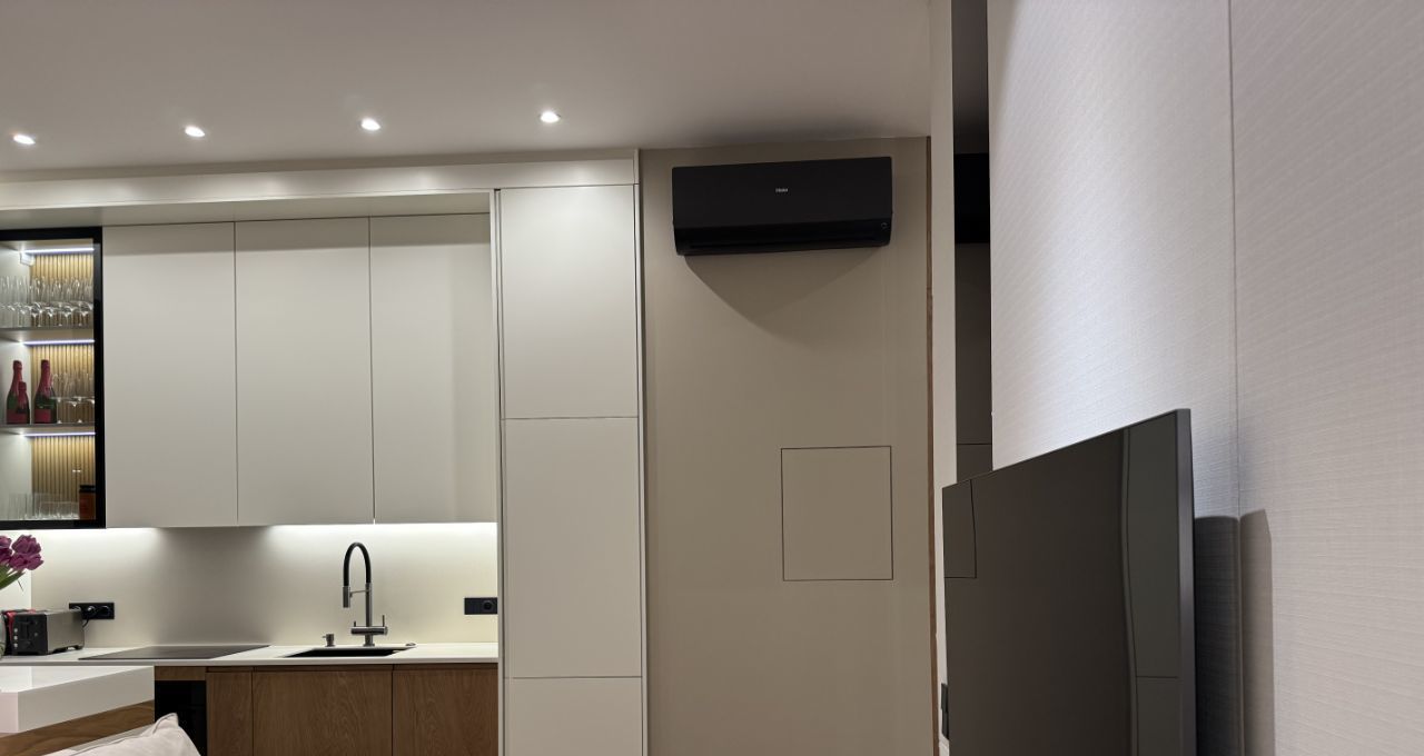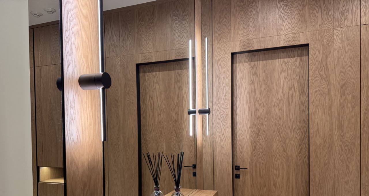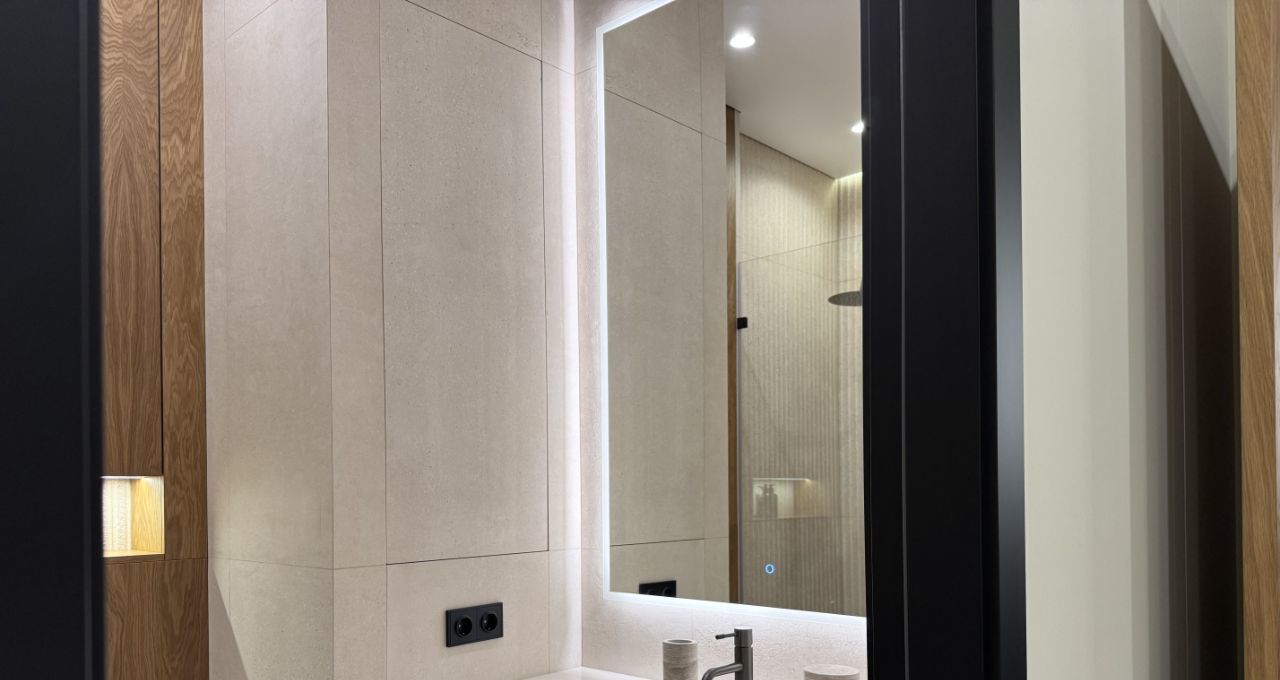 Датчики протечки, кондер в каждой комнате, подогрев полов, электронный замок, продуманная подсветка, организация подоконников для комфортного времяпрепровождения, водяной камин (безопасен для детей, работает как увлажнитель), много дизайнерских панелей.