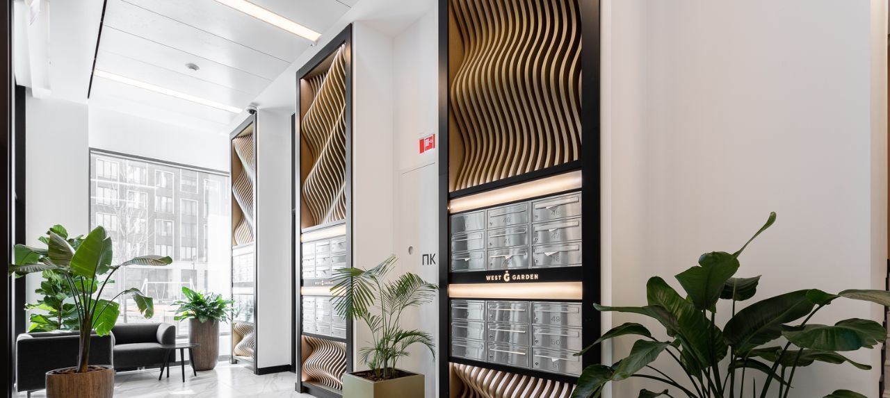 Инфраструктура: ландшафтный охраняемый квартал, стильные лобби с мягкими зонами ожидания, где можно провести встречу, подземный паркинг.