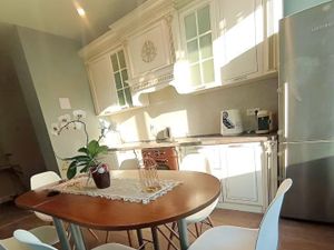 В квартире выполнен современный ремонт, в светлых тонах, качественная техника и мебель выполненная под заказ.