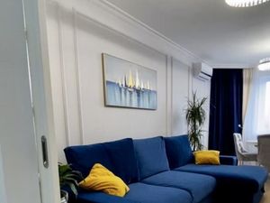В квартире выполнен качественный дизайнерский ремонт с применением люксовых материалов. Кухня изготовлена под заказ. Пространство организовано так, чтобы каждое помещение было функциональным и комфортным. В гостиной и спальне предусмотрены зоны для отдыха и работы. Санузел совмещенный, оснащен современной сантехникой. Есть лоджия с прекрасным видом на реку, где можно обустроить зону для отдыха или хранения.