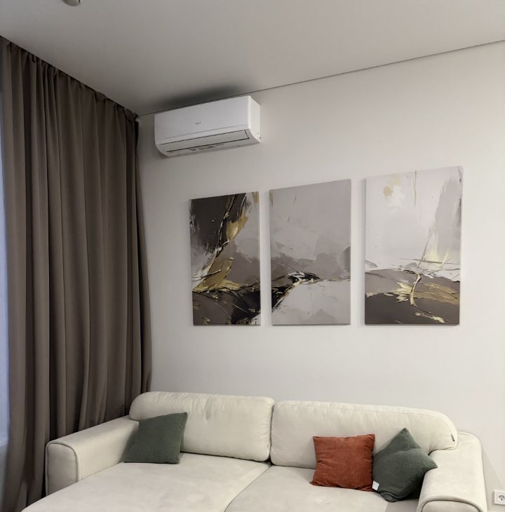 • В комнатах: два кондиционера (в спальне и в гостиной) и телевизор. Отдельное рабочее место в спальне.