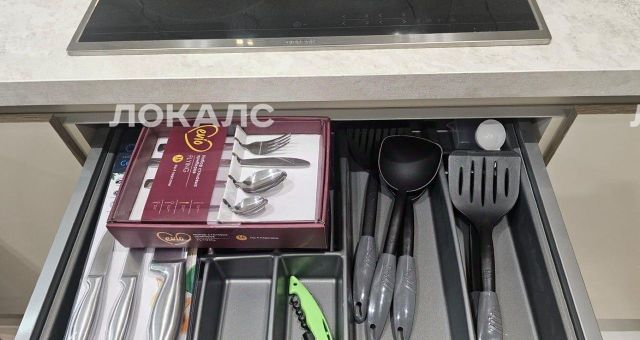 Панорамные окна с системой проветривания, пропускают много света, вид на бульвар и реку. В квартире много места для хранения, имеется отдельная гардеробная комната. В наличии также пылесос, гладильная доска, стремянка и сейф.